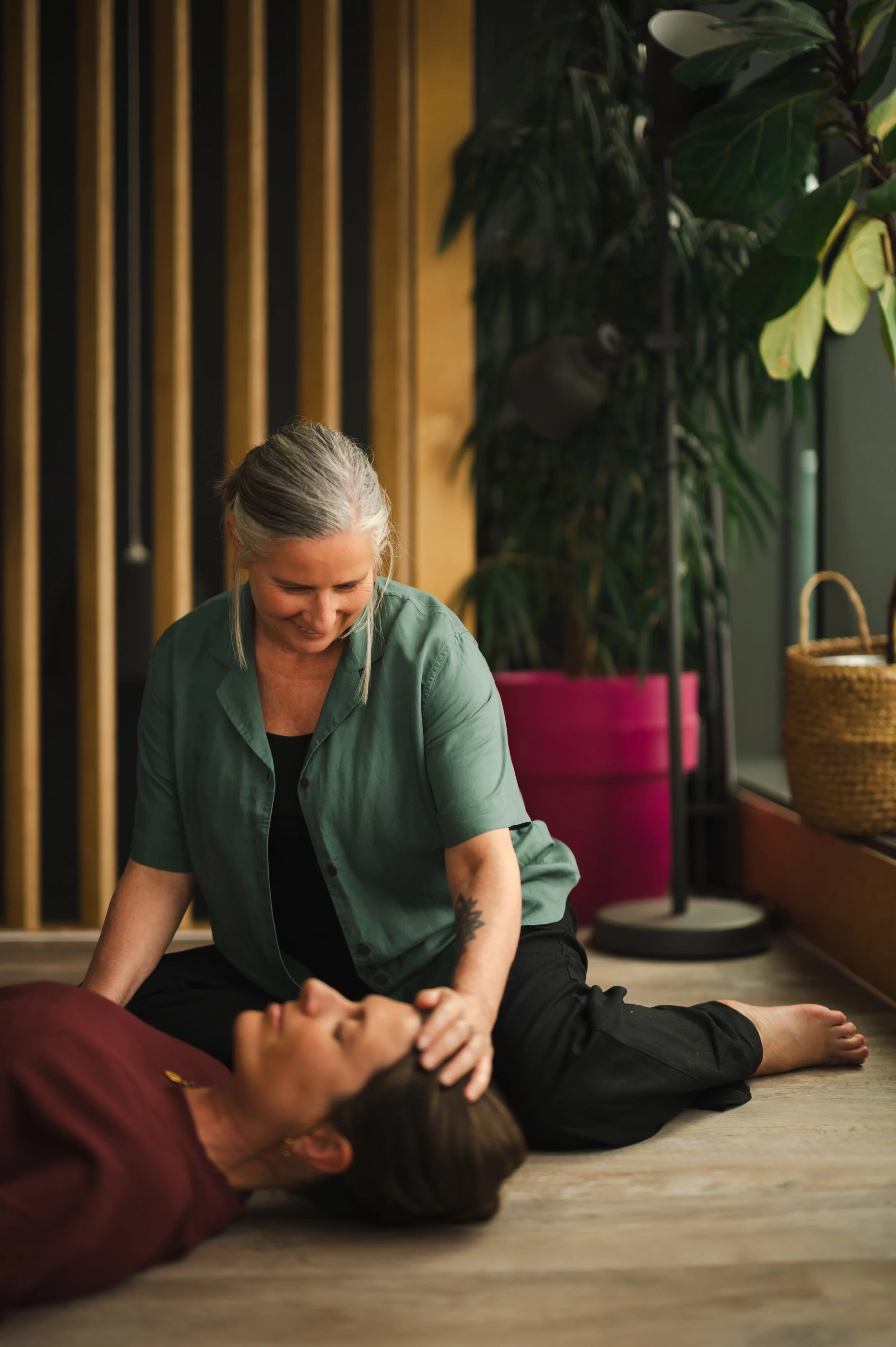 My background spans yoga, breathwork, psychotherapy and somatic practice, and everything we offer is informed by a deep respect for the nervous system and how people actually live in their bodies.