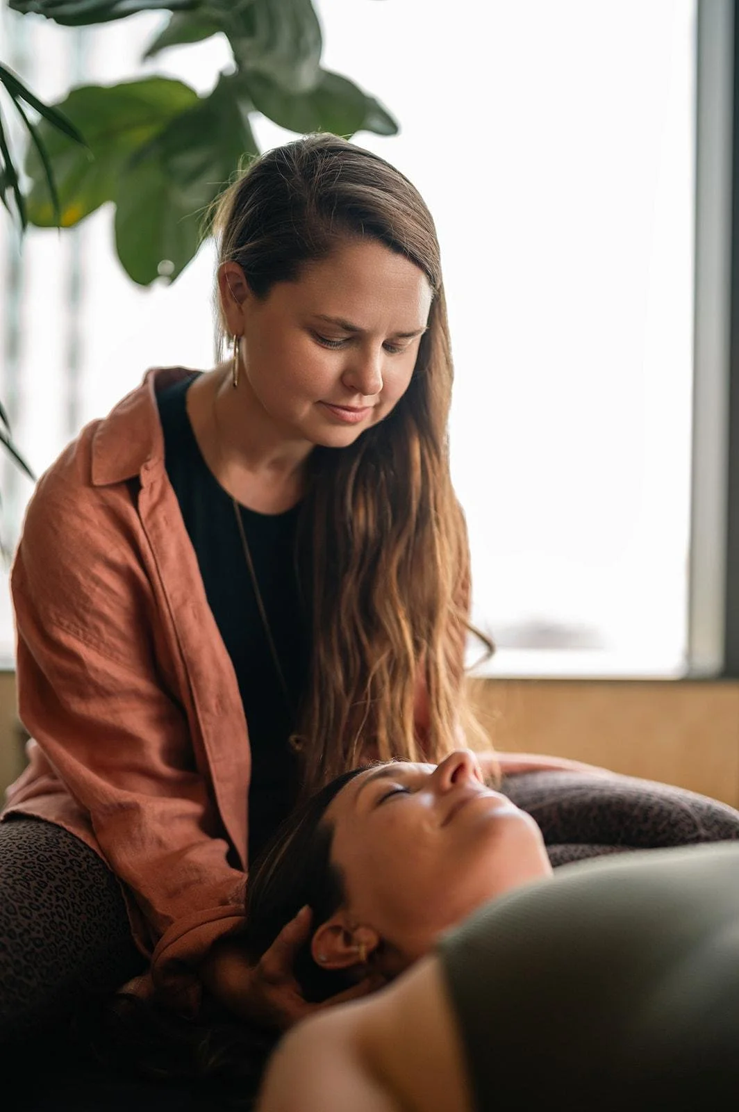 Upstairs, the space is light-filled with open river views, home to our yoga classes. Downstairs is darker, more contained, and purpose-built for Pilates, strength and our reformer programme. Two very different environments, each shaped around the work that happens there.